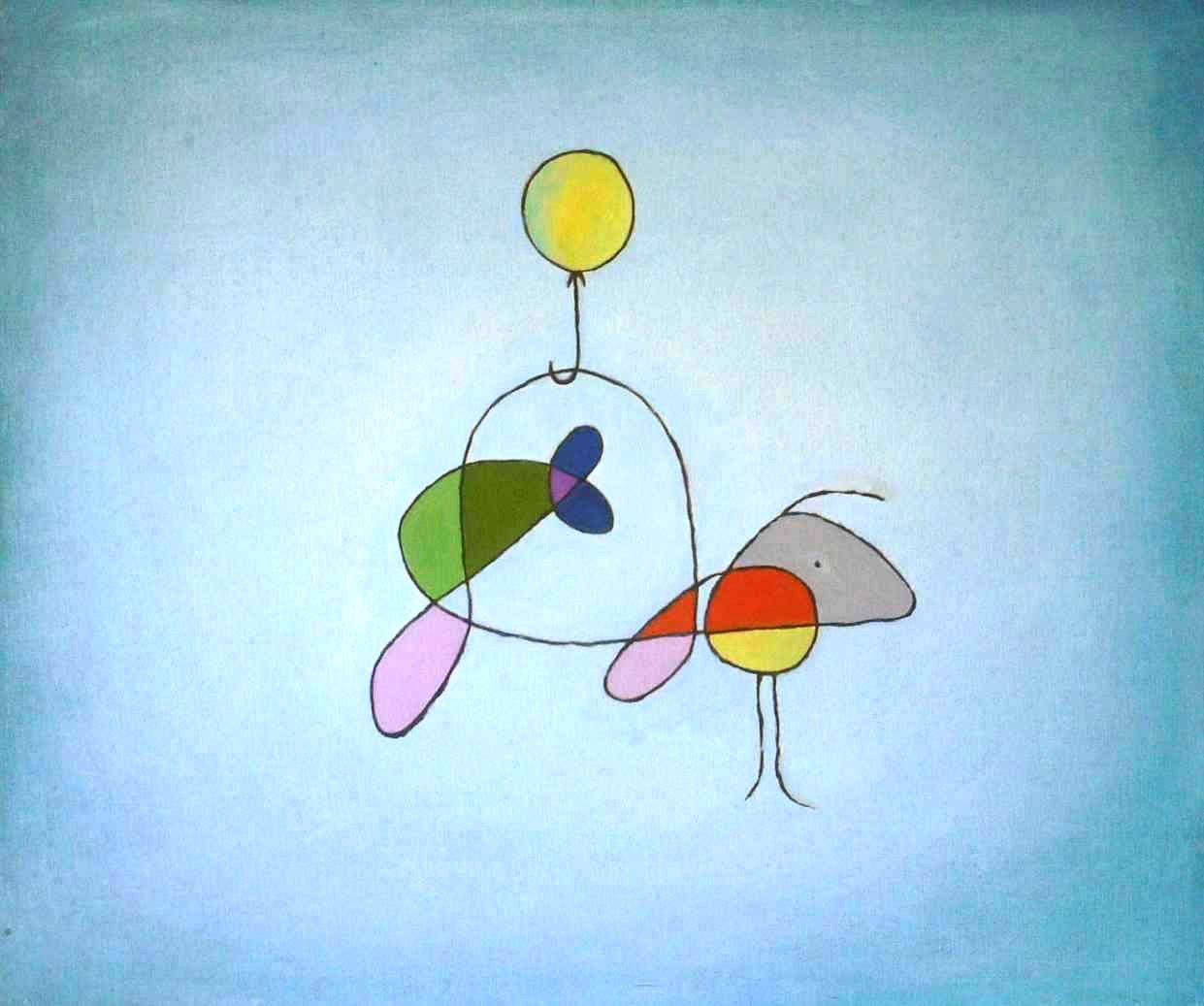 | Ein lullisches Bild (Näheres zu "lullish" s. in Reiter Biografie ), bei dem bis auf Beine und Luftballon fast alles mit einem einzigen schnell gezogenen Strich gemalt wurde. Natürlich wurden auch die Farben nachträglich hinzugefügt. |