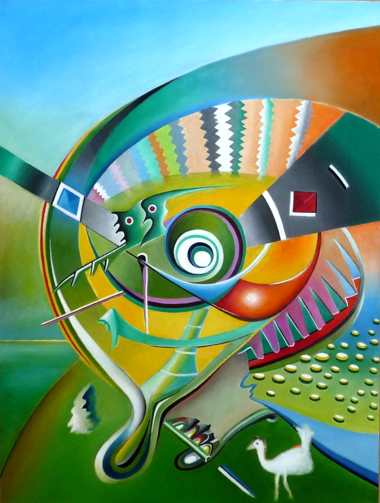 | 1990, Der Emu verlässt das Land seiner Träume Öl auf Malpapier, 42cm*56cm |