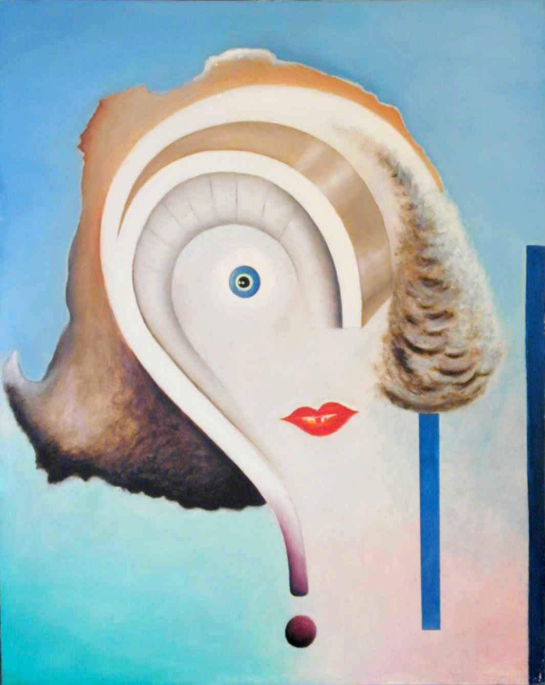 | Auge, Mund, eine Damenfrisur und ein großes Fragezeichen - und fertig ist das ewig Weibliche. Ach, wenn es doch in Wirklichkeit auch so einfach wäre! |