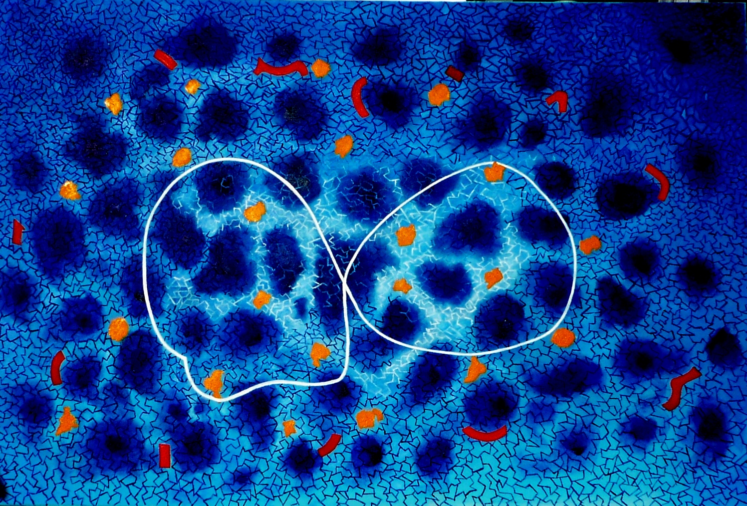 in kräftigem Weiß gehaltenen Linie an, die etwa die