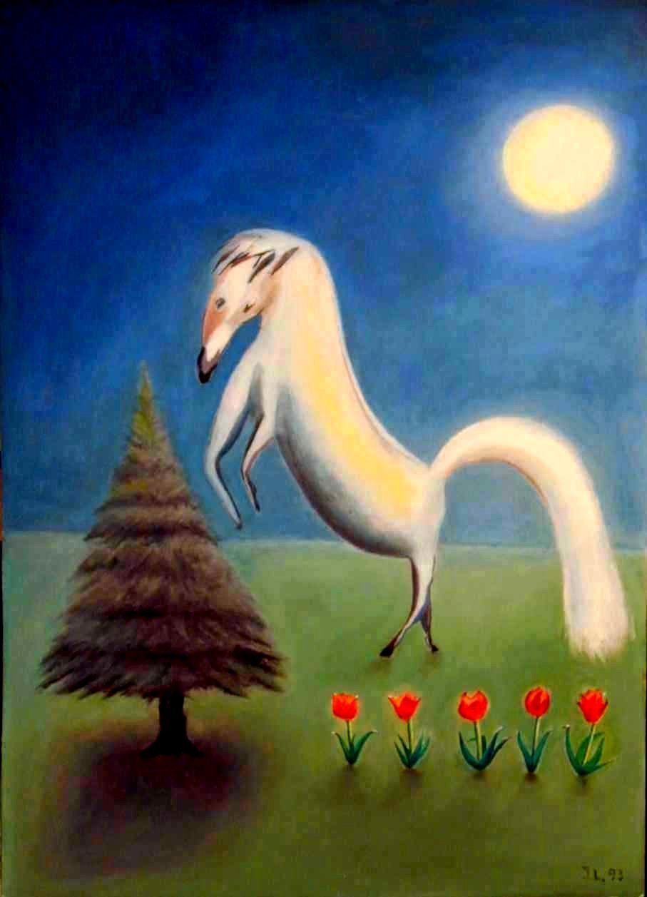 einbilden, in einer mondbeschienenen Landschaft Farben zu