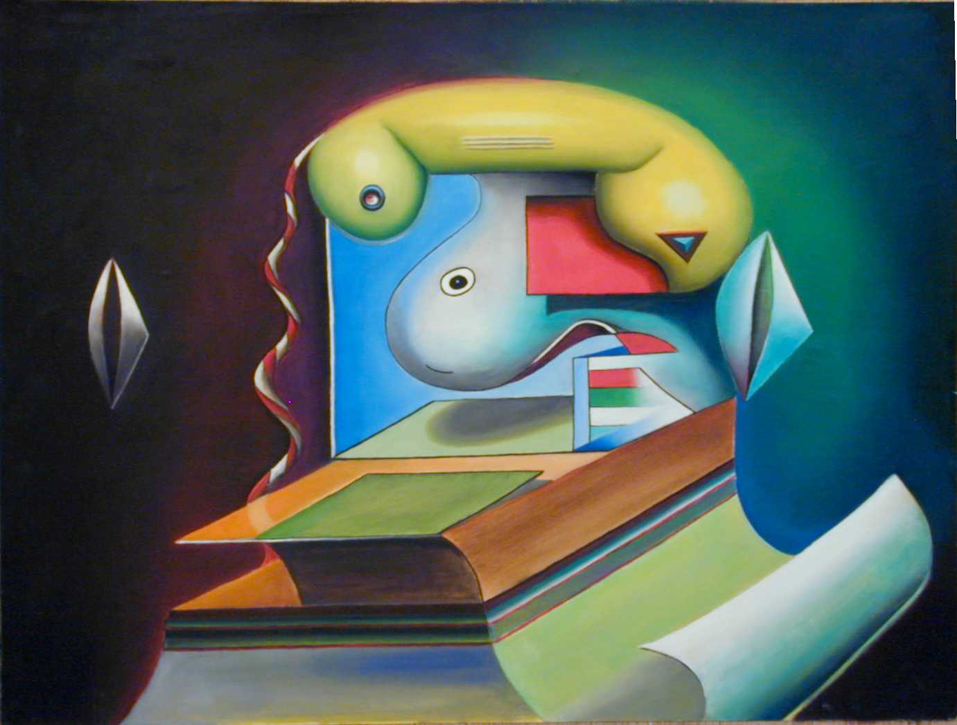 | 1989, Telekom, Öl auf Malpapier, welches auf Sperrholz aufgezogen ist. |